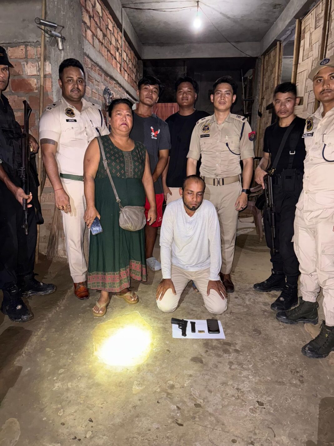 कछार जिले के लखीपुर थाना अंतर्गत ह्मारखावलीन इलाके से सरीफ हुसैन ( 36 ) नामक व्यक्ति को उसके घर पिस्तौल और पांच राउंड गोली के साथ पकड़ा गया है। पुलिस को उसके घर में अवैध हथियार होने विशेष इनपुट मिले थे, जिसके बाद कार्रवाई की गई।
