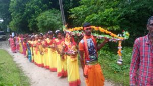 आज सुबह, सुबह पालई चा बागिचा के एलाकाधीन निराथल बस्ती के शिव भक्तों ने भोले भोलेनाथ की नगर परिक्रमा में निकलकर काटाखाल होकर खमपाल (दक्षिण बेकीरपार) स्थित श्रीकृष्ण रुक्मिणी कलाक्षेत्र परिसर में शुभागमन किया। कलाक्षेत्र के अध्यक्ष विधान सिंह ने भगवान शिव के श्रद्धालुओं का भव्य स्वागत किया। इस अवसर पर, उन्होंने श्रद्धालुओं को पवित्र रुक्मिणी नदी से जल संग्रह करने के लिए प्रोत्साहित किया और पवित्र रुक्मिणी नदी से शिव भक्तों को पवित्र जल संग्रह में भरपूर सहयोग किया गया। यह जल संग्रह भगवान शिव की पूजा-अर्चना के लिए अत्यंत महत्वपूर्ण माना जाता है।