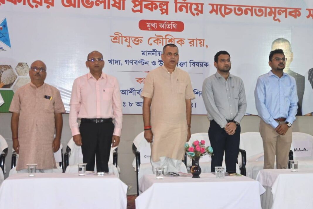 उन्होंने मंत्री कौशिक राय की भी प्रशंसा की। एक अन्य विधायक निहार रंजन दास ने कहा कि वर्तमान सरकार ने आम लोगों के सामाजिक-आर्थिक विकास के लिए कई कदम उठाए हैं। खाद्य, सार्वजनिक वितरण एवं उपभोक्ता मामले विभाग के अतिरिक्त मुख्य सचिव बिश्वरंजन श्यामल ने कहा कि वर्तमान में राज्य में लगभग 100 प्रतिशत राशन कार्ड आधार से जुड़ चुके हैं। जिला आयुक्त मृदुल यादव ने शुरुआत में स्वागत भाषण दिया। इस कार्यक्रम में विधायक खलील उद्दीन मजूमदार, जिला परिषद अध्यक्ष कंकण नारायण सिकदर, भाजपा कछार जिला समिति के अध्यक्ष रूपम साहा, लखीपुर सह – जिला आयुक्त ध्रुबज्योति पाठक और अन्य उपस्थित थे।