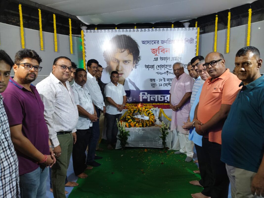 विधायक दीपायन चक्रवर्ती कि उपस्थिति में आयोजित श्रद्धांजलि अनुष्ठान में मारवाड़ी सम्मेलन की ओर से प्रांतीय उपाध्यक्ष मूलचंद बैद,मंडलीय उपाध्यक्ष पवन जैन, मारवाड़ी सम्मेलन सिलचर शाखा के उपाध्यक्ष जय कुमार बरडिया,मंत्री प्रकाश चंद सुराना,सलाहकार विजय कुमार सांड,कमल सारदा,सहमंत्री पारस कुमार बरडिया,मारवाड़ी युवा मंच के अध्यक्ष विवेक जैन,मंत्री विशाल सांड प्रमुख ने श्रद्धांजलि अर्पित की।इस अवसर पर सम्मेलन के पदाधिकारियों ने कहा कि जनप्रिय कलाकार जुबिन गर्ग हर समाज के लिए,पूरे असम के लिए ही नहीं बल्कि पूरे देश के लोकप्रिय कलाकार थे, उनकी मौत से आज हम सब निःशब्द हैं।
